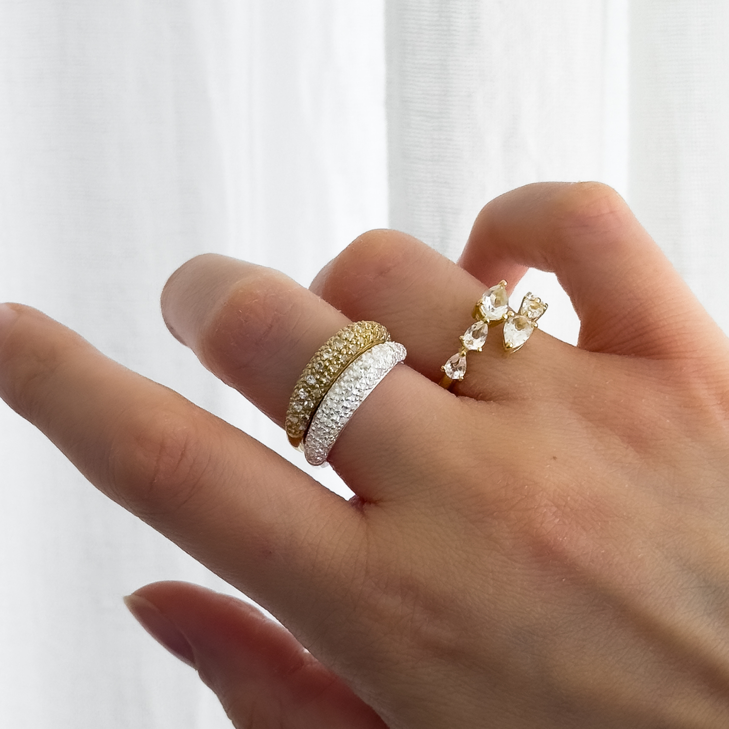 Unsere Schmuckstücke bestehen aus hochwertigen Materialien wie 18k Gold Vermeil und 925 Sterling Silber.